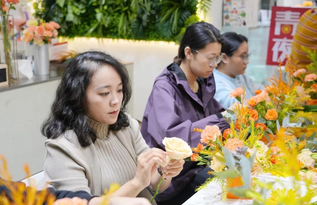 11月12日晚,泸水市“青年夜校”花艺课程在屿岚花艺集合店顺利举办。活动现场花香四溢,首批8名青年学员在专业花艺师指导下学习插花技巧,体验手工创作的乐趣。