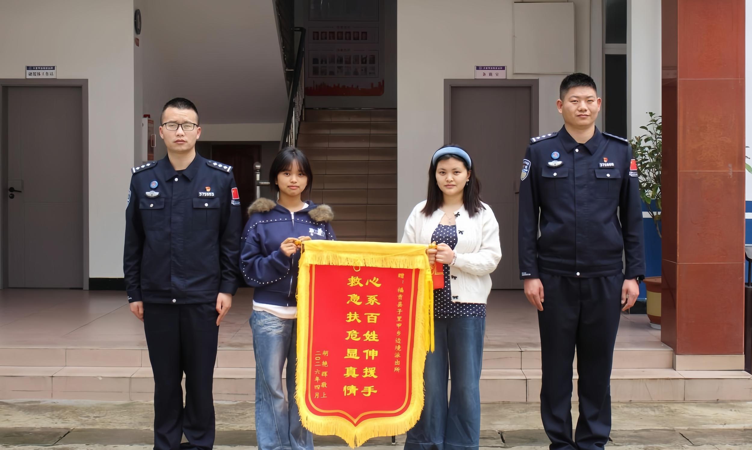 近日,在云南省怒江傈僳族自治州福贡县子里甲乡,一名康复出院的女中学生在家人的陪同下,将一面印有“心系百姓伸援手 救急扶危显真情”字样的锦旗送到了福贡县边境管理大队子里甲边境派出所。