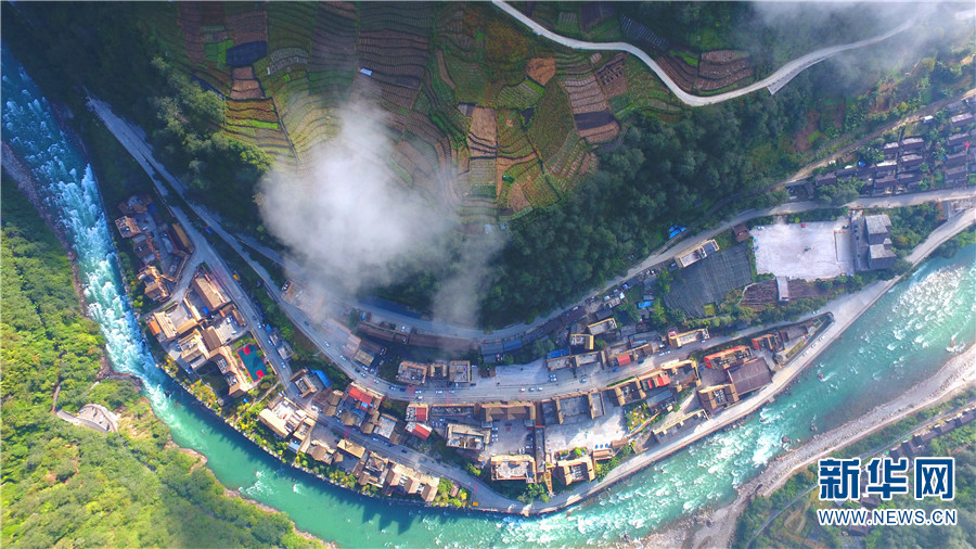 无人机视角下的独龙江峡谷。新华网 赵普凡 摄