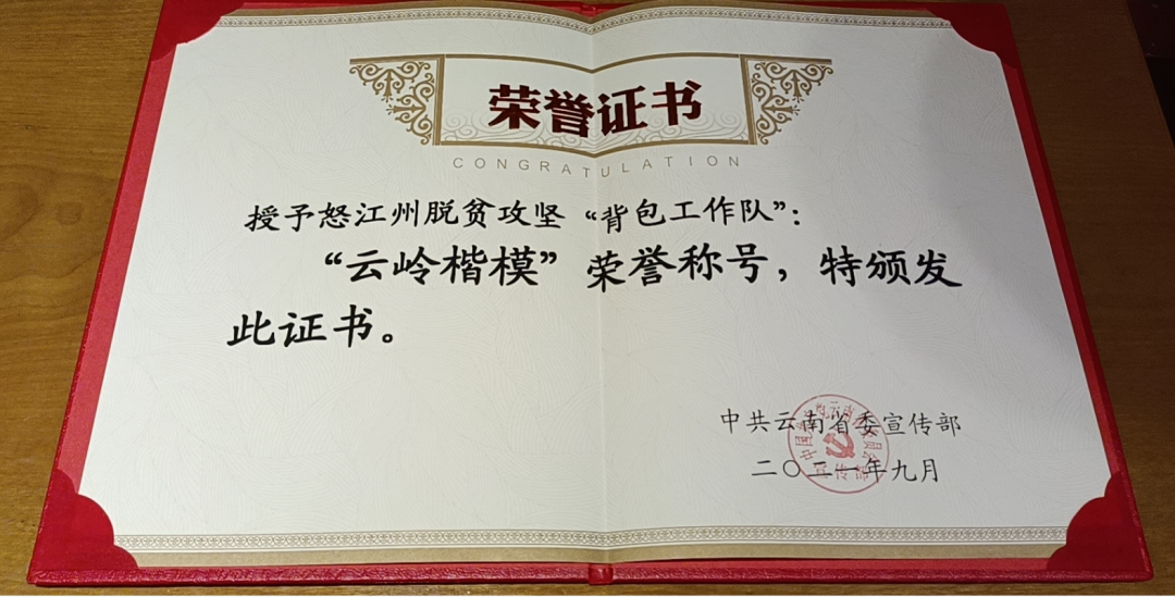 近日,怒江州脱贫攻坚“背包工作队”被云南省委宣传部授予“云岭楷模”称号。
