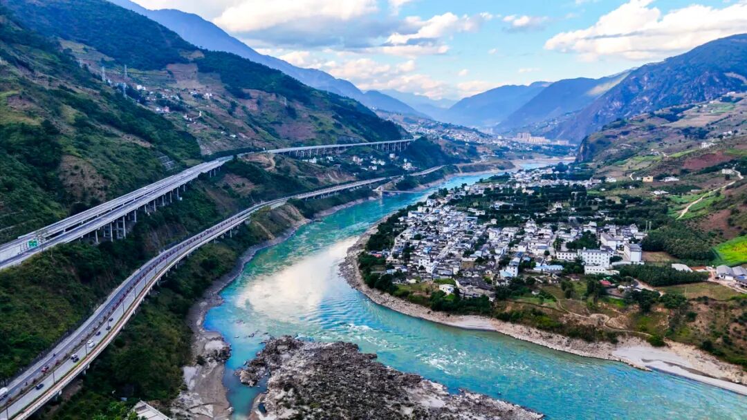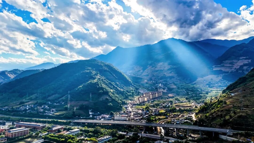 从空中俯瞰,在阳光照耀下,条条公路如同大地的血脉,为峡谷大地注入新的生机与活力,铺就了一条通往全面小康的康庄大道。(和彪 廖若华 陈金勇 新荣昌 李文才)