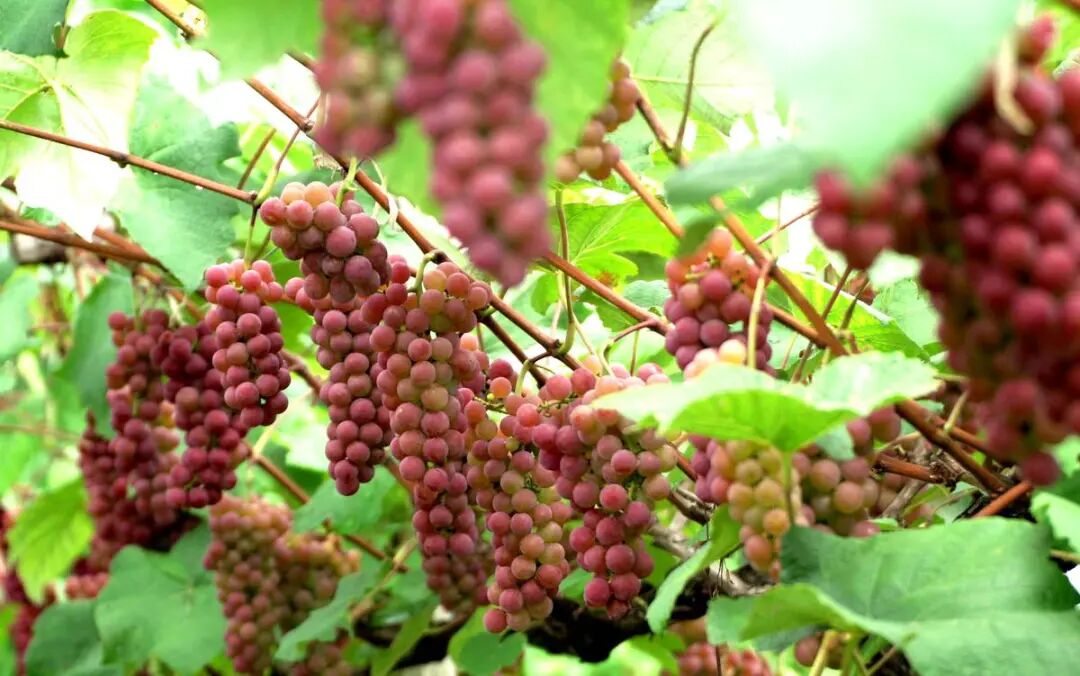季跻葡萄种植基地的藤蔓间垂着串串晶莹