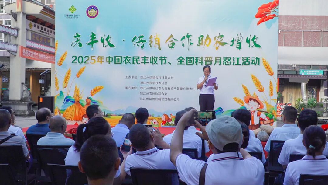 9月23日,在第八个中国农民丰收节当天,怒江州供销合作联社与科学技术协会联合举办“庆丰收供销合作社助农增收”主题活动,通过成果展示、经验分享、产销对接等形式,为全州农民搭建产销桥梁,助力特色农产品“出山进城”,共享丰收喜悦。