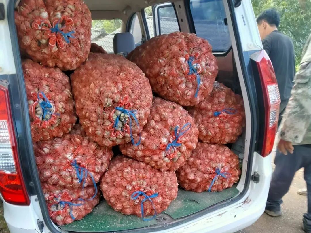经过协商,收购商以每斤4.3元的价格收购红皮蒜。在村干部的组织下,村民们有序地将大蒜打包、过秤、装车,短短半天时间,就卖出了6000多斤红皮蒜,惠及32户村民。