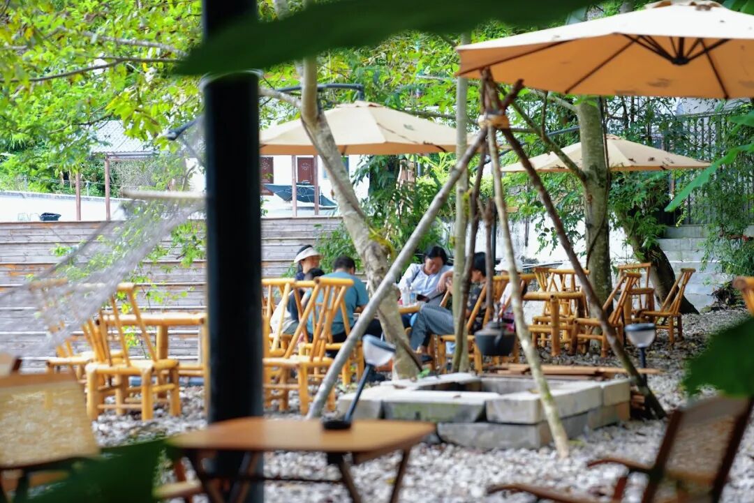 江对面的腊竹底村,同样热闹不已。咖啡屋内,不少游客正在打卡拍照。坐在绿植环绕的庭院,阳光洒在桌椅上,拿铁的香气裹挟着草木芬芳,时间仿佛都慢了下来。