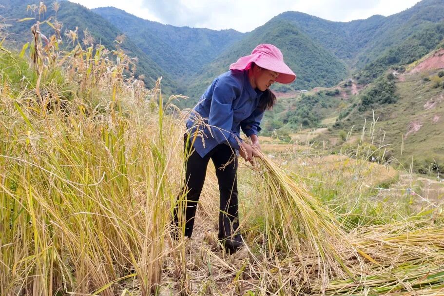 村民李进来家种植的6亩水稻,今年迎来了好收成,预计谷子产量能达4000斤。她家的田边更是热闹,20多个要好的邻里早早赶来帮忙收稻打谷,一天就能将6亩的稻谷打完。“从五月插秧起,邻里就常来帮忙,现在到了收谷子,更是不用说!”李进来抱着一捧稻穗,脸上的笑意藏都藏不住。