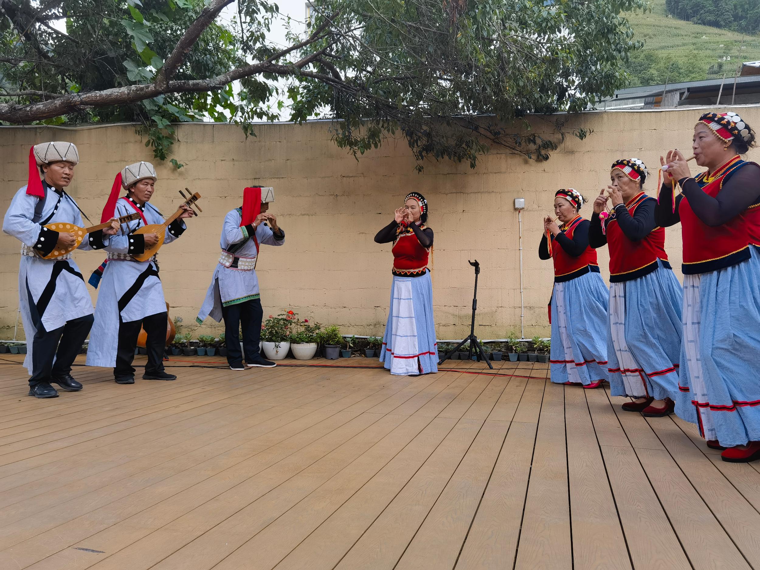 文化是旅游的灵魂。为了丰富游客的夜间文化和体验内容,腊竹底村深挖本土文化资源,组织村里的文艺骨干、民间艺人,组建了傈僳族传统乐队,定期在村内广场或长街宴上举行民族文化表演。铿锵有力的《起奔》演奏,高亢悠扬的傈僳族民歌,欢快热烈的“刮克”舞蹈……原生态的表演展现了傈僳族文化的魅力,让游客沉浸其中,流连忘返。