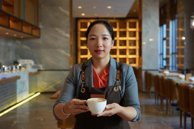 为了精进技艺,何丽梅把休息时间都用在了练习上,手机备忘录里密密麻麻记满了咖啡制作的方法与技巧,在无数次失败与反复打磨中,何丽梅成功做好了咖啡。同时,凭借餐饮服务积累的经验,使她更懂得如何让饮品多元满足顾客需求。“何丽梅那股钻劲儿真让人佩服!为了研发咖啡特调鸡尾酒,她总提前两小时到岗,一遍遍地调试基酒比例、咖啡萃取时长,反复品尝调整,就为了让风味达到最协调的状态。”同事赵喻权由衷称赞。