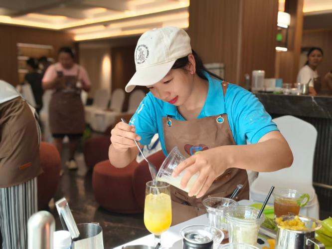 赛场不仅让何丽梅收获了荣誉,更结交了许多志同道合的伙伴。在与各地咖啡师的交流学习中,她又解锁了木姜子、酸角、五味子、本地水果等多种食材与咖啡的搭配可能,让每一杯特调都成为承载怒江风土的味觉载体。“她特别懂创新,总能跳出传统框架。之前琢磨出的咖啡冰淇淋特饮,每次推出都成了小朋友的‘必点款',家长们也夸这份创意特别贴心。”同事密润婷笑着介绍。