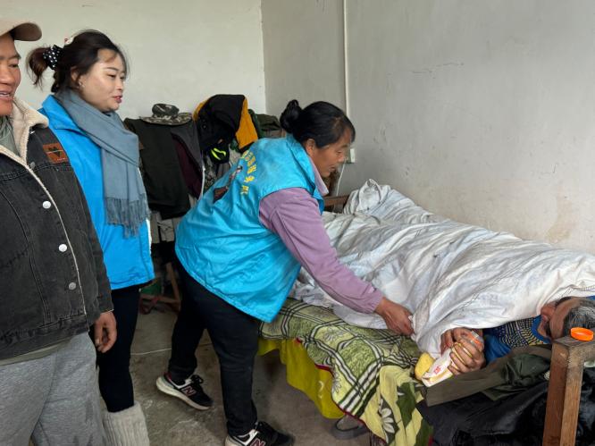 清晨的赤恒底村,身着蓝马甲的“村嫂”们已开始忙碌。在独居老人此三社家中,村嫂娜小依熟练地整理内务、打扫卫生。这样的场景,是服务队关爱“一老一小”的缩影:不定时的“敲门”为留守老人、身体残疾的村民们代购生活物资;联合乡卫生院开展“流动健康”义诊;冬季入户检修电器,确保独居老人用电安全。
