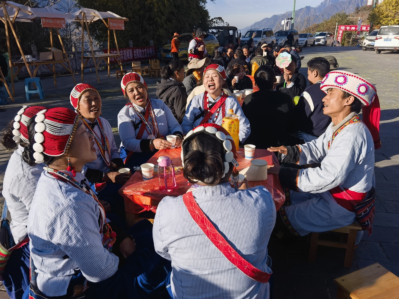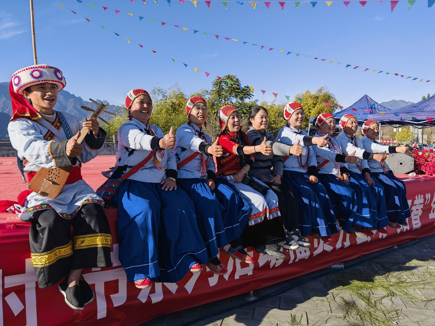“如眷”是怒族人民的“新年”。“‘如眷’就是村寨迎福,藏着我们怒族人的团圆情、感恩心。”正在会场调试琴弦,准备上台表演的村民和建忠笑着说道:“不管在外头多远,过年都得往家赶,吃一口怒苏拌饭,和乡亲们跳一场舞,这年才算过得踏实。”话音刚落,远处就传来悠扬的“达比亚”琴声,身着怒族服饰的文艺队员们款款走来,《哦得得》的欢歌一开口,就把现场的年味推向了第一个小高潮,游客们纷纷举着手机抓拍,生怕错过这鲜活的民族风情。
