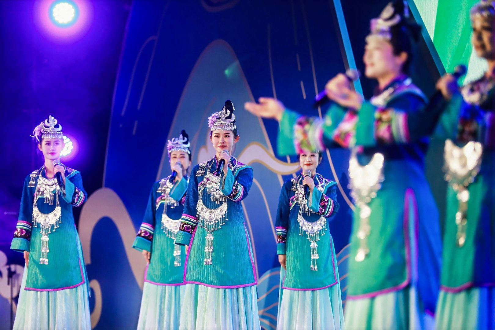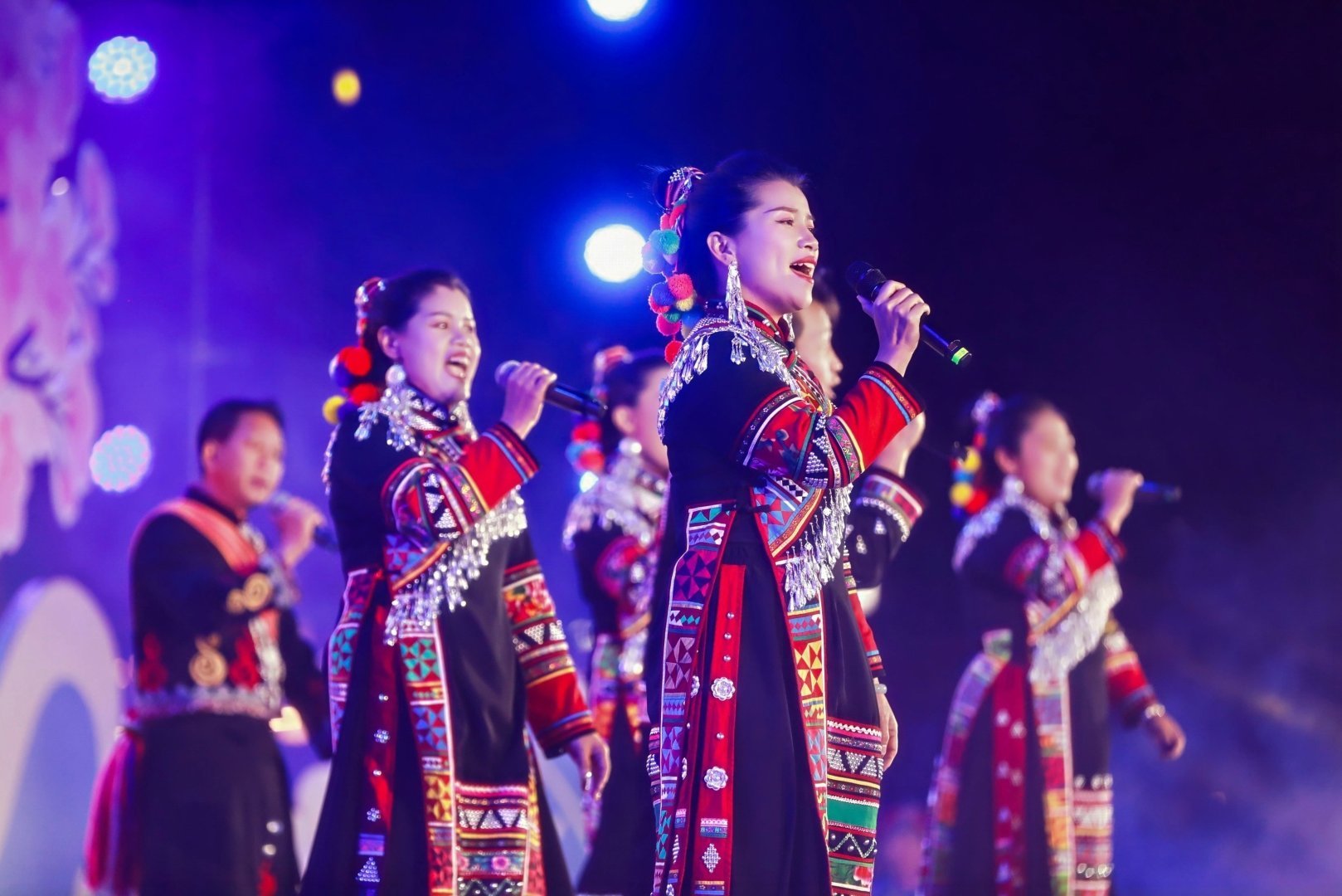 展演在热闹喜庆的《乡村好歌会》中强势启幕,欢快的节奏、奔放的舞蹈与高亢的唱腔交织共振,瞬间点燃现场氛围。随后,17个精心编排的节目轮番登场,涵盖小合唱、独唱、男女声对唱、表演唱等多种形式,全方位展现了云南多民族文化的交融共生与乡村文化的蓬勃生机。