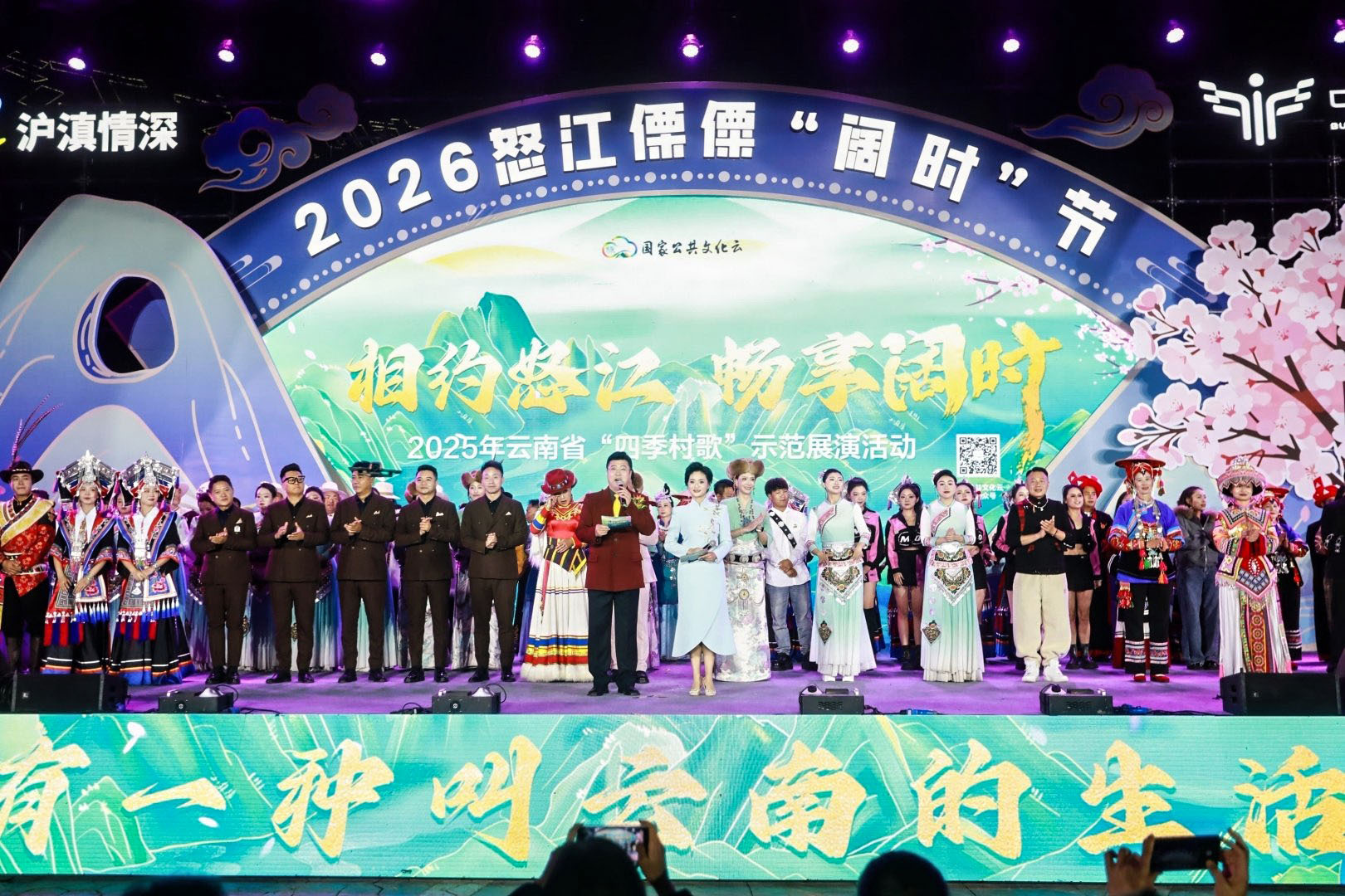 近日,云南省怒江傈僳族自治州泸水市主城区的怒江西岸百姓大舞台流光溢彩、歌声飞扬,2025年云南省“四季村歌”示范展演活动在此激情绽放。来自全省16个州市及高校的演出团队齐聚一堂,以多元艺术形式唱响乡村振兴的时代强音,用民族风情为现场及线上观众呈现了一场兼具文化厚度、艺术张力与情感温度的文化盛宴。