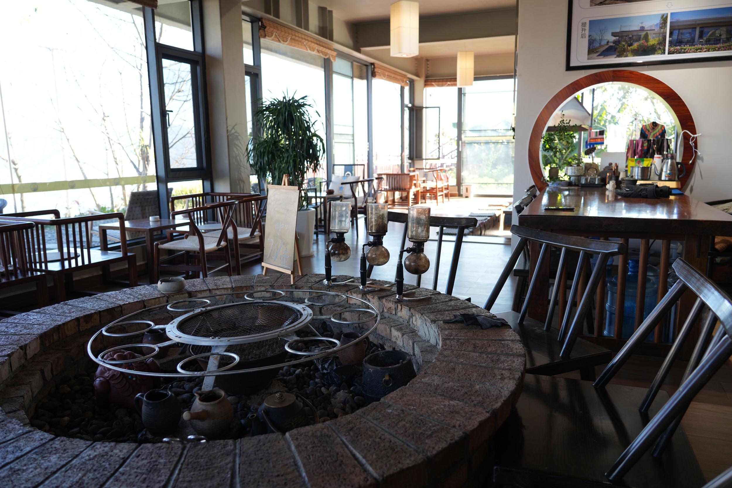 推开门,原木桌椅搭配原始火塘,暖黄的光线漫过陈设,氛围温馨又惬意。胡林英夫妇穿梭其中,一边热情招呼客人,一边娴熟地操作着器具,专注制作着火喷咖啡。