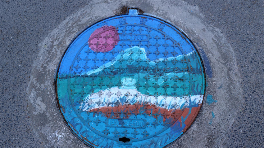 兰坪一中学生胡佳奇说:“我画的是小怪兽吃饼干,每次路过看到它,就想起和朋友们的愉快时光。我一直觉得井盖冷冰冰的,现在能用画笔让它‘活’起来,感觉特别有意义。”