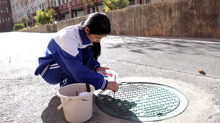 兰坪一中学生胡舒语开心地说道:“现在走在校园里,每一步都像是在参观一个小型画展。这些井盖画让平凡的校园生活多了许多惊喜,也激励着我们:原来我们可以用自己的双手,让周围的世界变得更美好。”