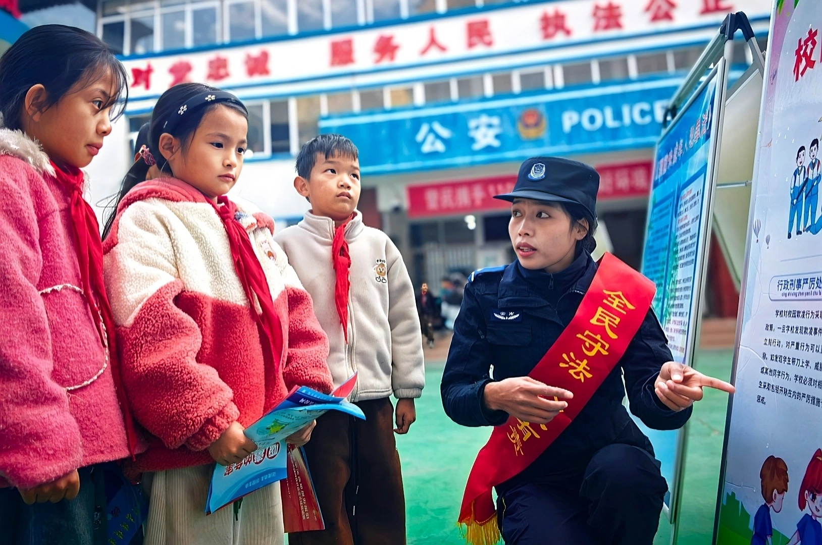 在法治宣讲环节,民警针对小学生的认知特点,摒弃刻板说教,采用“趣味故事+互动问答”的形式,深入浅出地讲解了《中华人民共和国未成年人保护法》《中华人民共和国治安管理处罚法》中的相关常识。内容涵盖正确拨打110、边境安全须知、防范拐骗与校园欺凌等,孩子们积极参与互动,在轻松的氛围中增强了法治观念与自我保护意识。