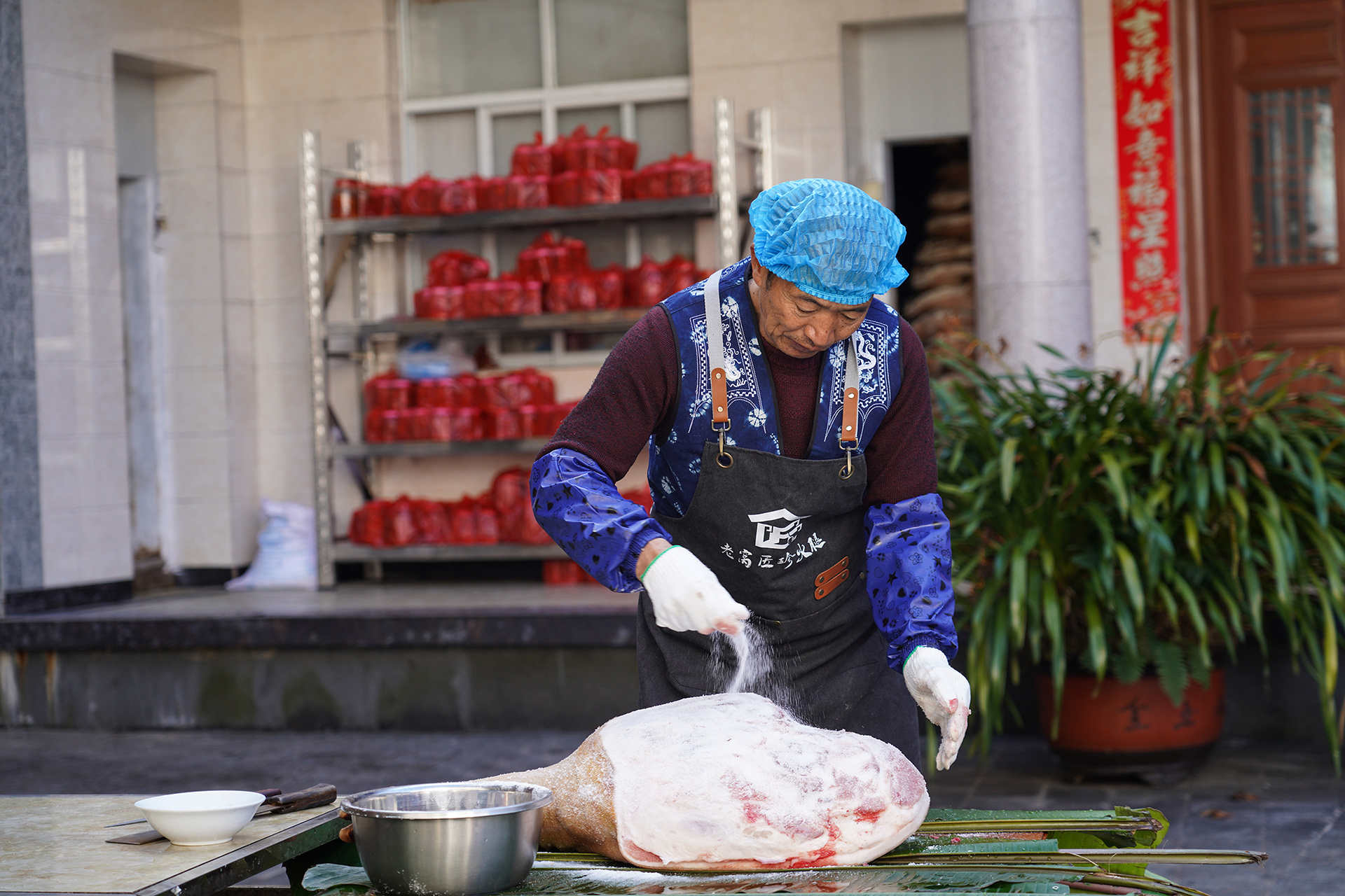 春节将至,腊味渐浓。云南省怒江傈僳族自治州泸水市的老窝火腿迎来产销旺季。近日,记者走进老窝镇荣华村“匠珍火腿”作坊,怒江老窝匠珍火腿食品有限公司负责人杨李忠正忙着给火腿上盐揉制,浓郁醇厚的咸香扑面而来,作坊里一派热火朝天的忙碌景象。