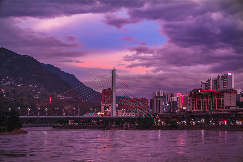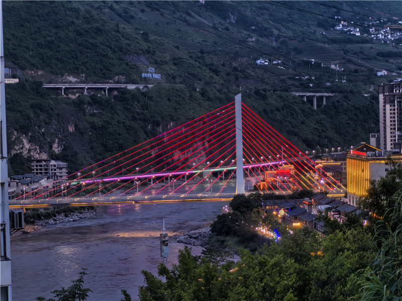 每当夜幕降临,华灯初上,云南省怒江傈僳族自治州泸水城区便披上了五彩霓裳。横跨怒江东西两岸的通达桥上,霓虹灯有规律地切换着不同的图案,七彩光影倾泻于涛涛江面,映衬着边陲小镇六库浓浓的人间烟火;东岸千余米高的悬崖峭壁上,“怒江大峡谷”几个醒目大字赫然矗立,清晰标注着这片土地的地理坐标,也让这里成为备受青睐的网红打卡点。南来北往的游客至此,总会随手定格美景,将“遇见怒江”的温柔与震撼珍藏为永恒纪念。
