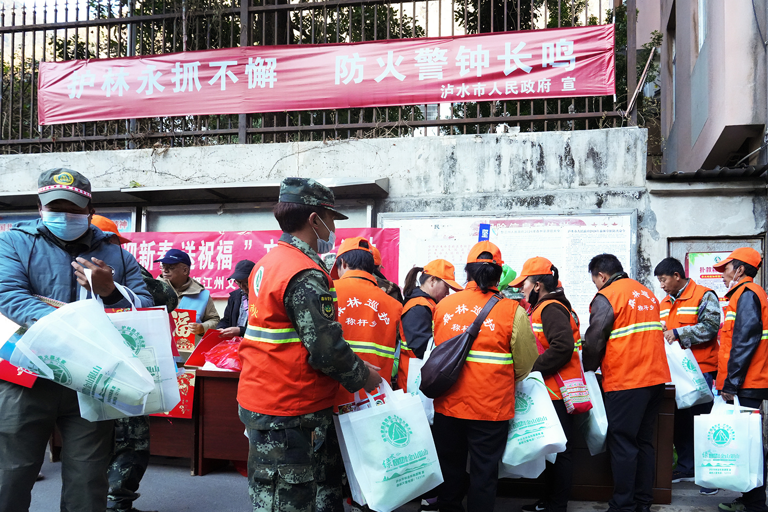 赶集日是乡村人员流动最密集的时段,亦是开展森林草原防火宣传的黄金契机。在称杆乡人民政府门口,红色宣传台格外醒目,“护林永抓不懈 防火警钟长鸣”的横幅高悬其上。工作人员与护林员分工协作,向过往赶集群众逐一发放森林草原防灭火手册、《户主通知书》等宣传物料,将防火知识送到群众手中。