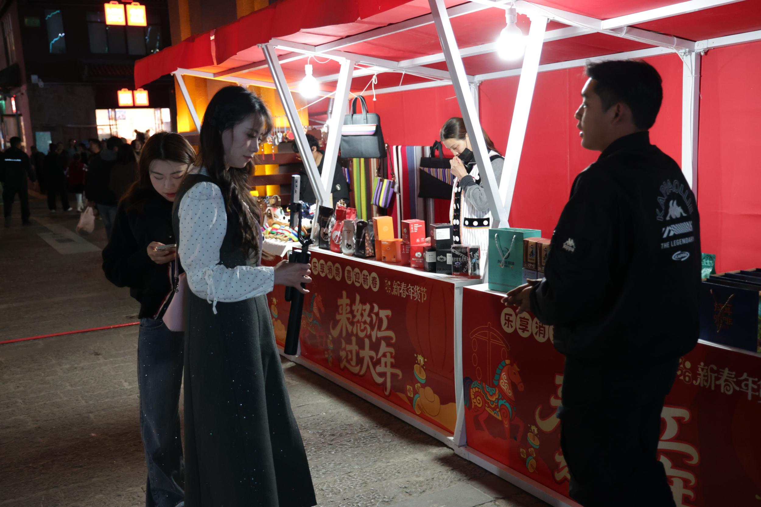“老板,这火腿再便宜点,我多买些。”“怒江咖啡太香了,我要十盒。”傍晚,云南省特色街区——怒江傈僳族自治州泸水市怒江西岸人声鼎沸、暖意融融。50多个展销摊位依次排开,汇集了怒江精品咖啡、老窝火腿、草果等农特产品和民族服饰、特色饰品等文创商品。吆喝声、讨价还价声、欢笑声混着江风,酿成了怒江最浓的年味儿。“来怒江过大年——乐享消费 喜迎新春”2026年新春年货节正在这里火热进行。