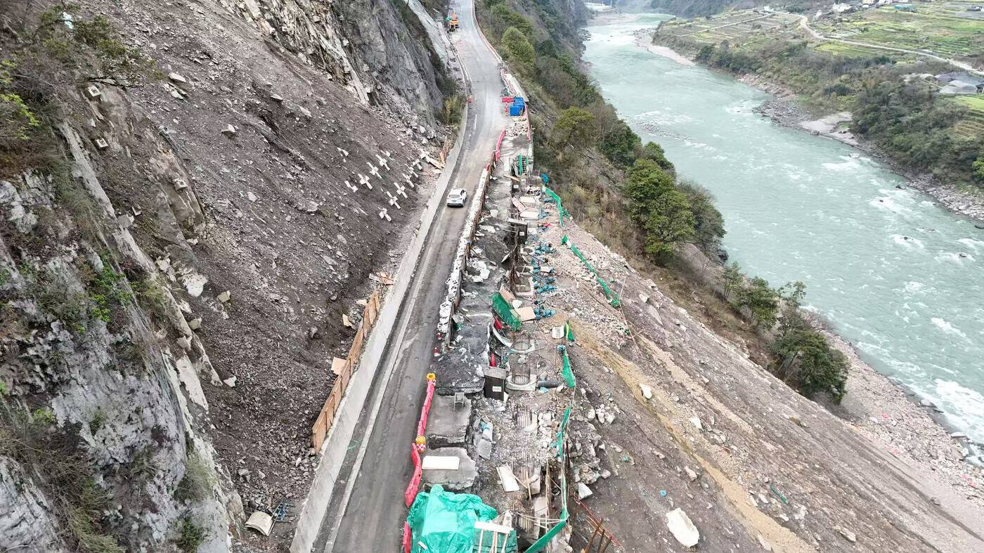 怒江大峡谷山高谷深、地质复杂、气候特殊,年均降水量大、局部地区降雨极端集中,边坡坍塌、落石、泥石流等灾害频发,整治施工面临风险高、难度大、保通压力重的多重挑战。部分隐患点位于公路上方 700 米高处,物资运输难、作业风险高。整治期间,部分已完成工程再次遭遇水毁,给施工带来极大考验。2025年,受持续强降雨天气影响,部分年初已完成处治的灾毁点再次发生灾情,如K28、K32棚洞工程因上边坡崩塌、泥石流影响,施工期间多次遭遇水毁,造成直接经济损失约547.59万元。