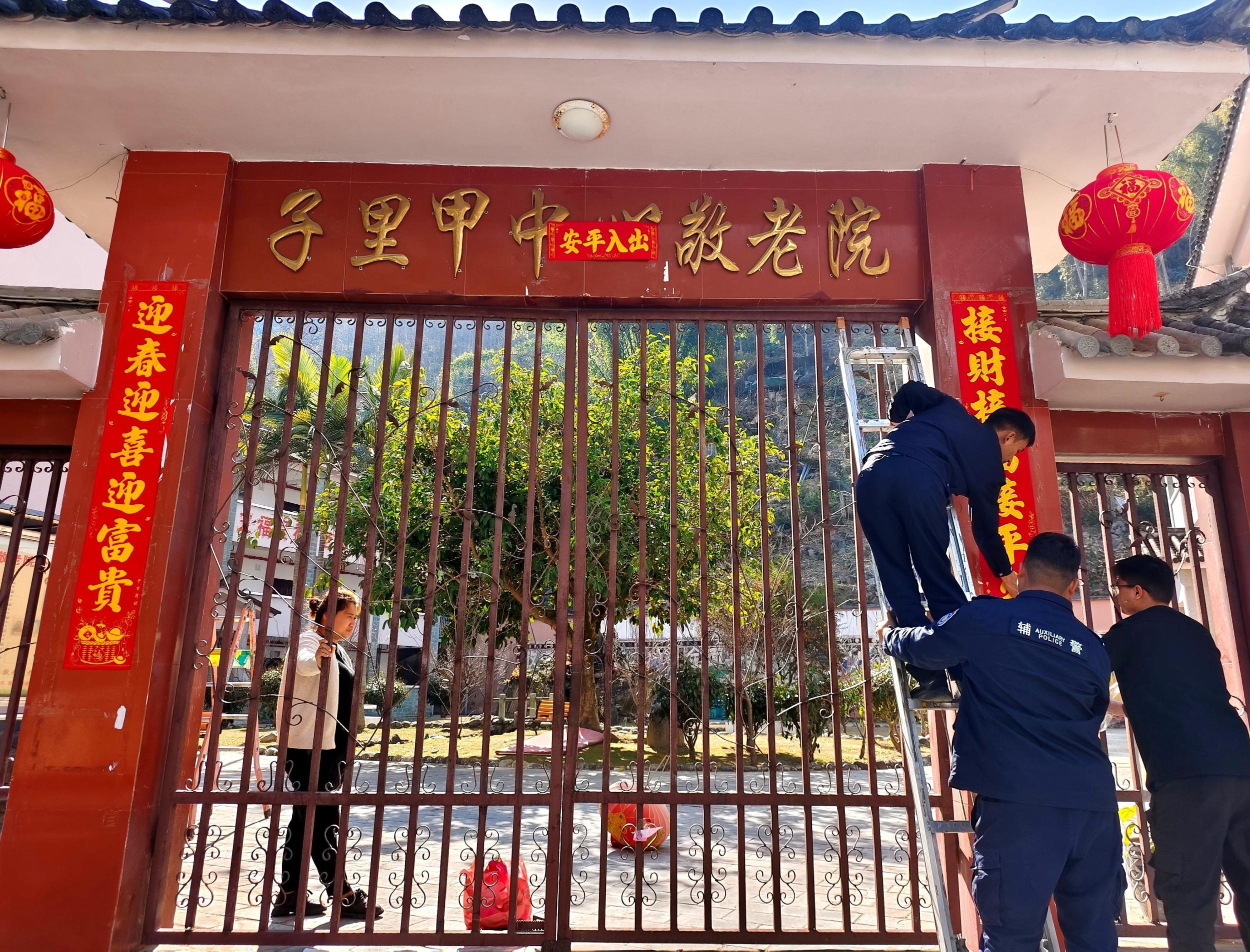 走进子里甲中心敬老院,处处已是新春将至的喜庆氛围。民警们分工协作、默契配合,在敬老院大门两侧张贴春联、悬挂灯笼,一抹抹鲜亮的中国红,瞬间让院落充满了浓浓年味,纸上的吉祥字句,承载着民警对老人们最真挚的新春祝愿。