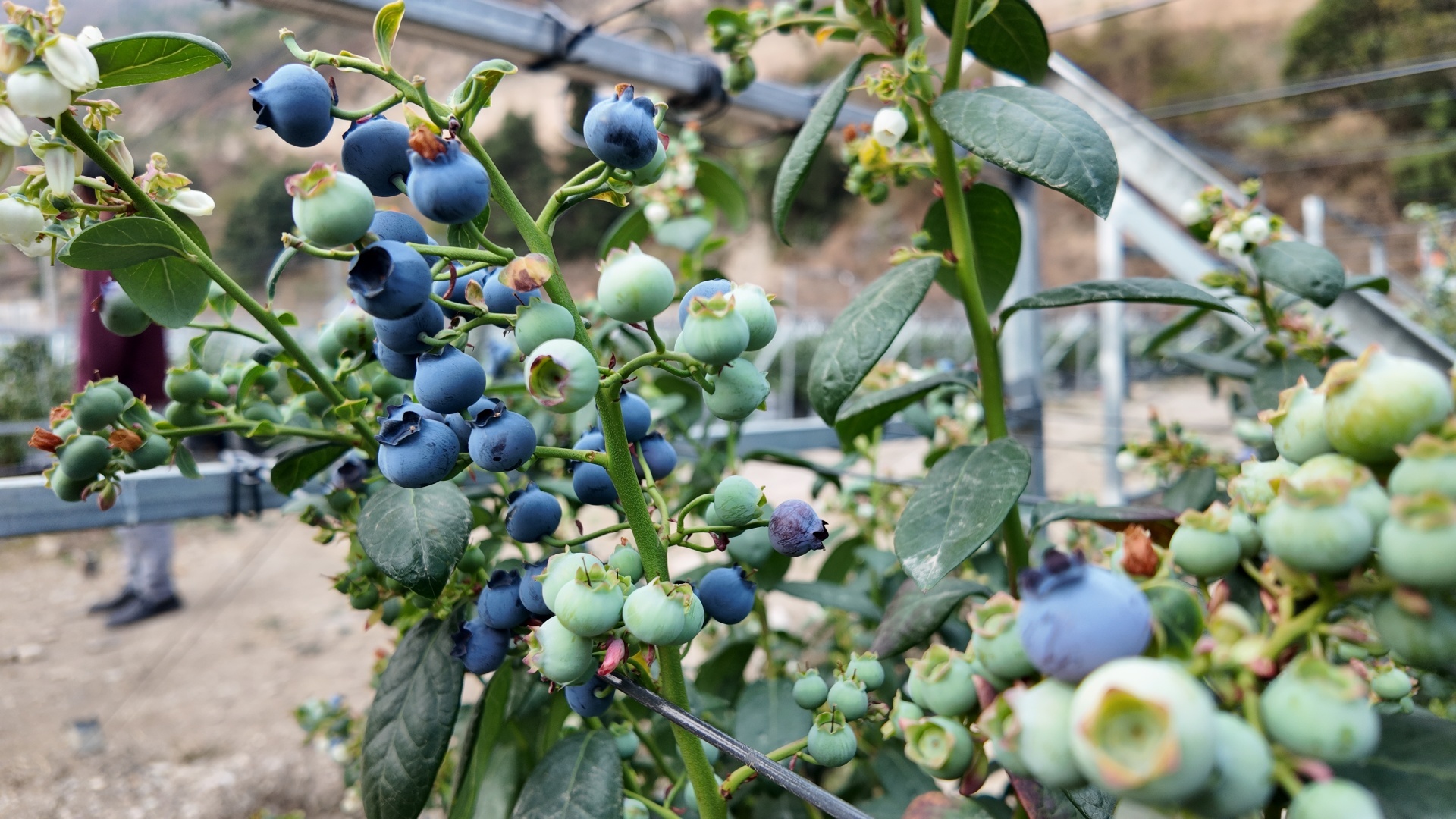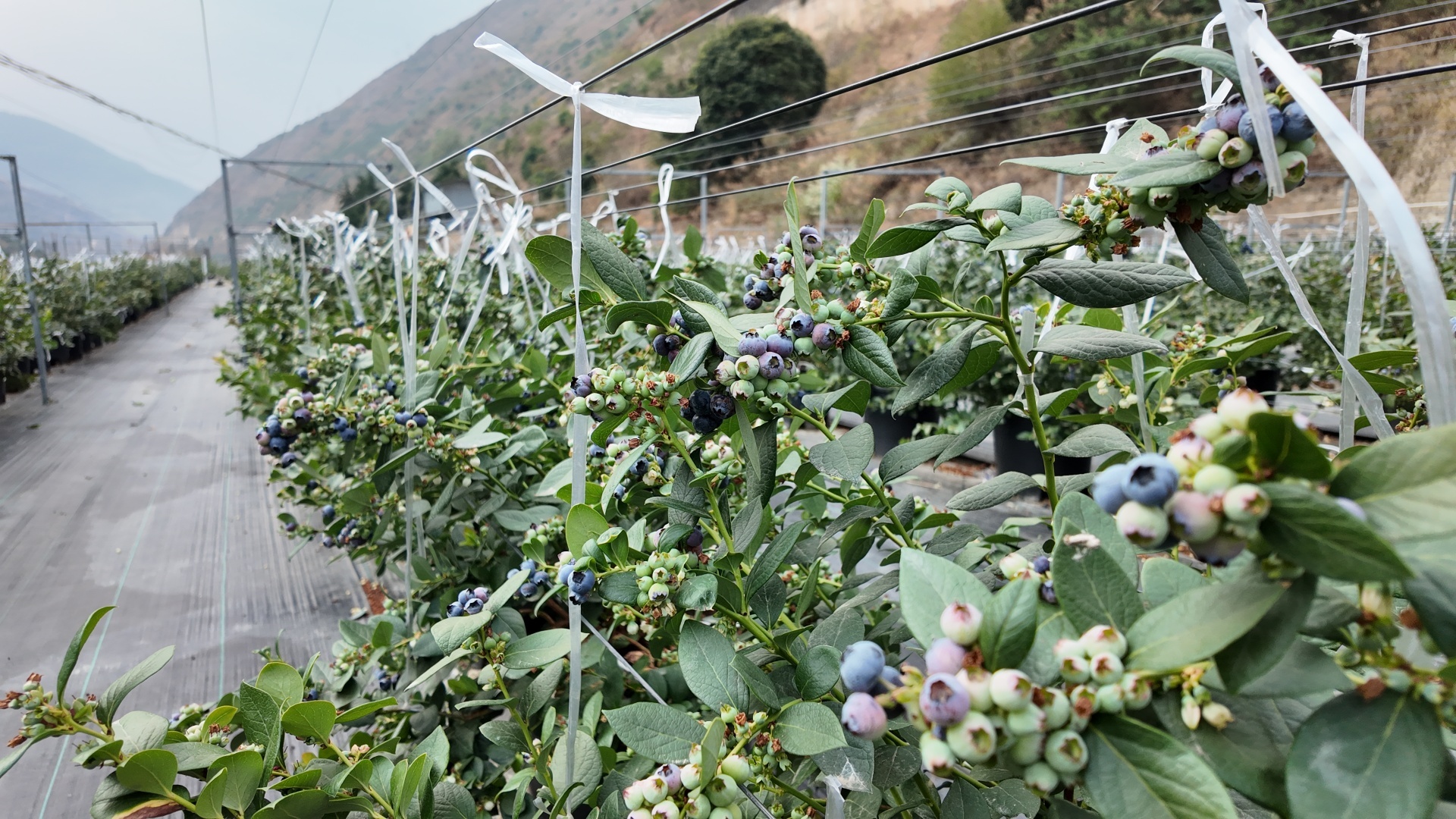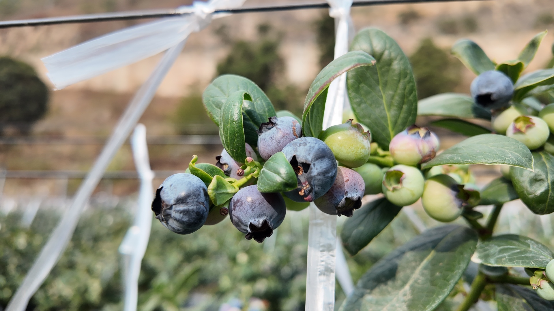 蓝莓园里,蓝莓缀满枝头,深紫的果实藏在翠绿的枝叶间,像一颗颗晶莹的蓝宝石,在阳光下泛着诱人的光泽。