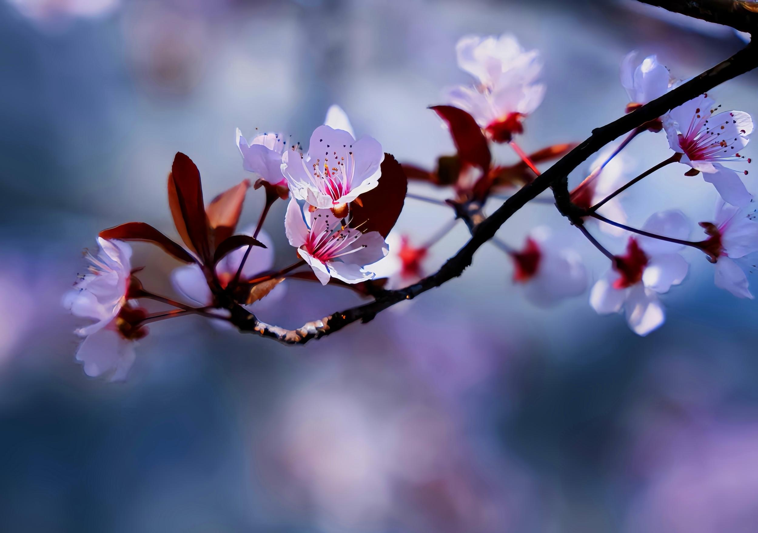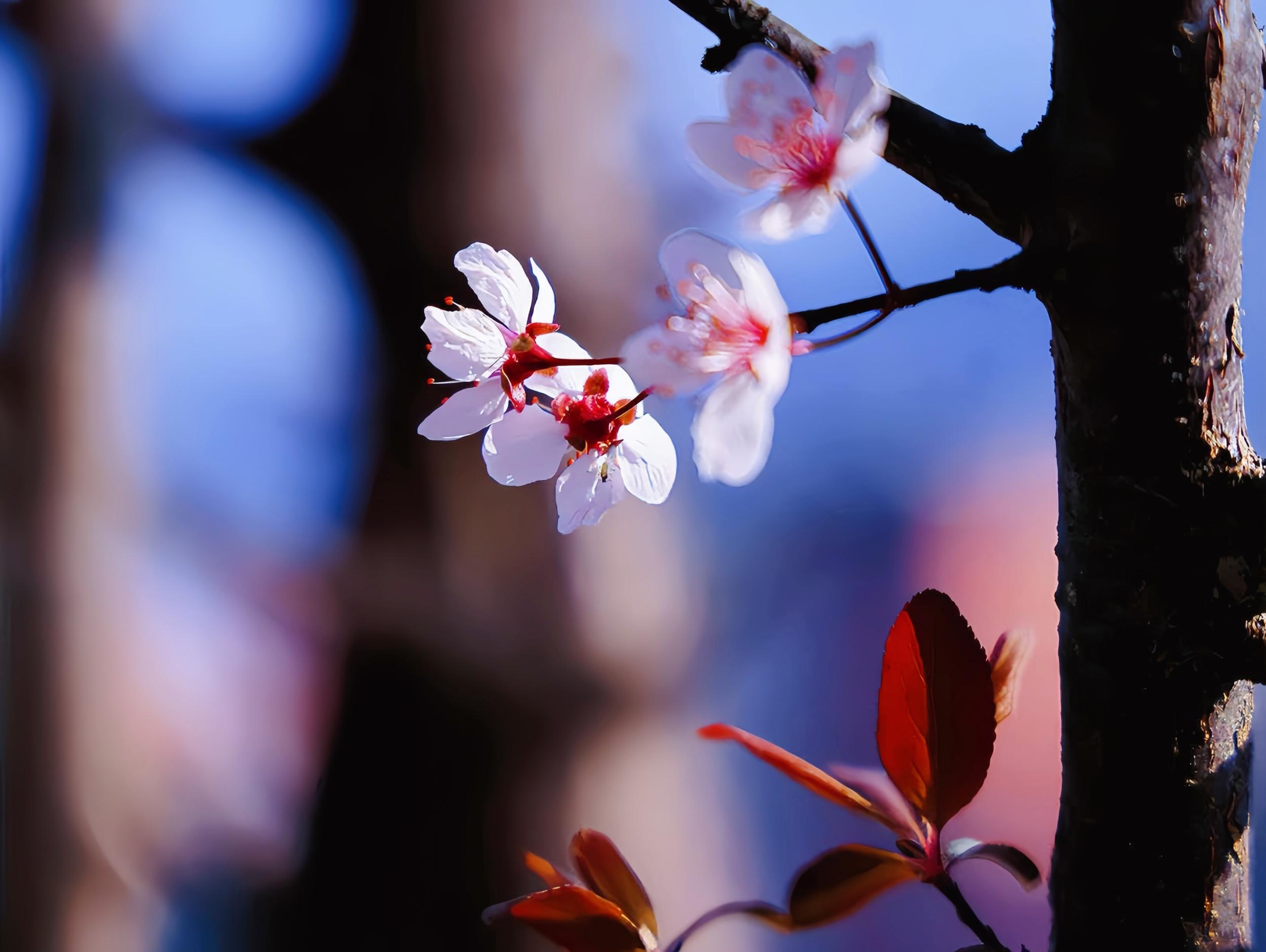 花开是有次序的。初绽时带着深红,像是攒足了力气;开到盛处,红意渐褪,变成浅浅的粉;待到快要谢了,反倒归于洁白,清清淡淡地飘落。一树花,便是一个由浓到淡的过程。