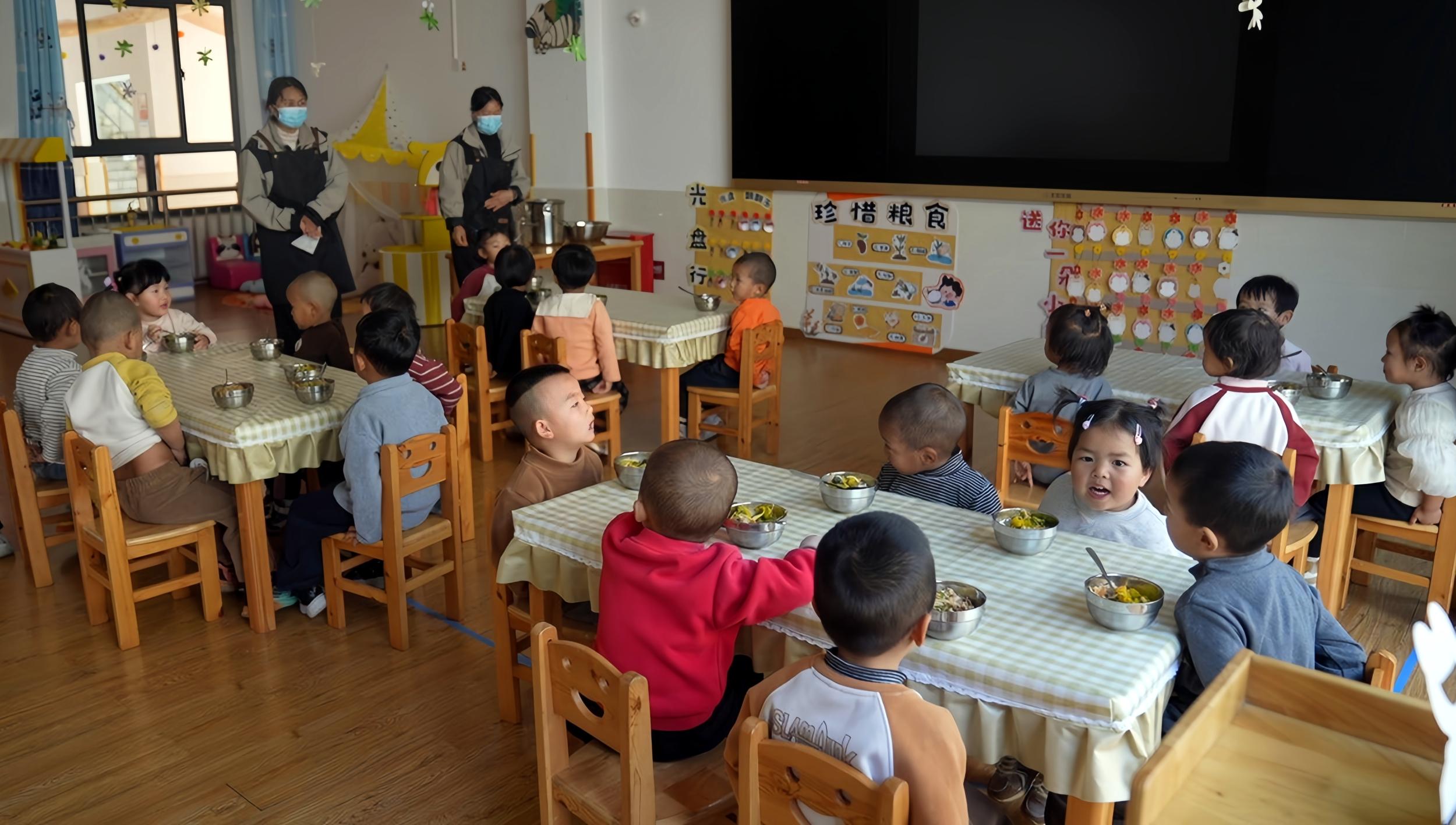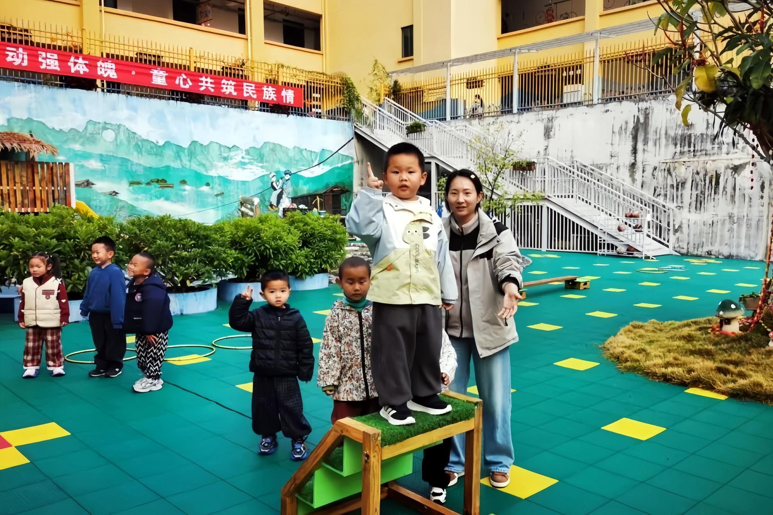 这是福贡县首个“托幼一体”试点幼儿园的日常场景。作为易地搬迁社区的配套幼儿园,润福幼儿园开设托班填补了当地2岁至3岁婴幼儿专业照护的空白,有效破解了搬迁家庭、务工家庭的“带娃难”问题。