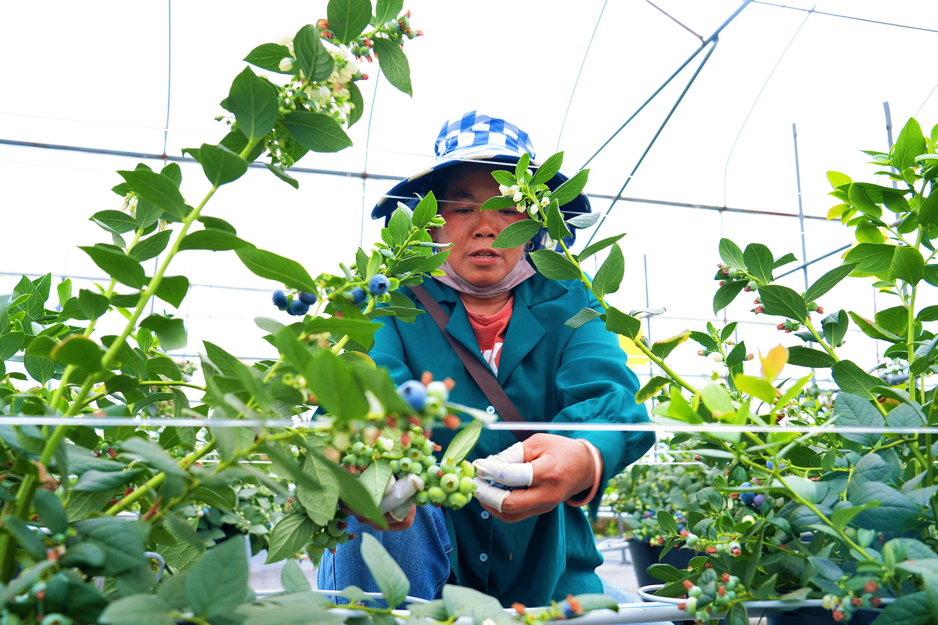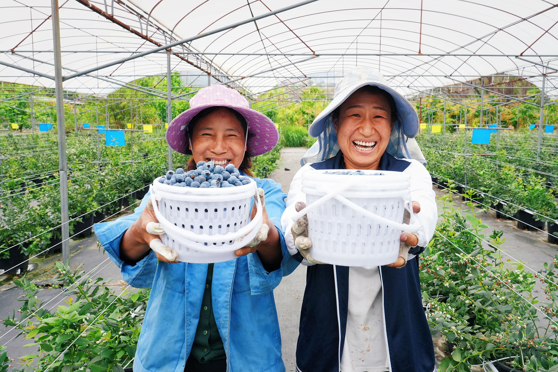 采摘时节,基地里一派繁忙的丰收景象。当地村民们佩戴专业指套,小心翼翼地进行精细化采摘,全程细心呵护果实果粉与完整品相,确保每一颗蓝莓都以最佳状态走向市场。对村民们而言,这片蓝莓基地不仅是孕育丰收的沃土,更是家门口的“就业岗”“增收田”,实现了就地就近就业、稳定持续增收,大家的脸上都洋溢着发自内心的喜悦,真切感受到产业发展带来的实实在在红利。