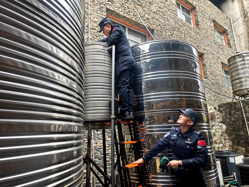 十分钟后,李世清与同事邵健波拎着工具箱出现在民宿门口。两人蹲在水表井旁,打着手电筒逐一排查。控制线松动、增压泵停转、主水管来水不畅,问题一个个被找出。重新插接线头,接通备用管道,再起身时,警服后背已湿透。