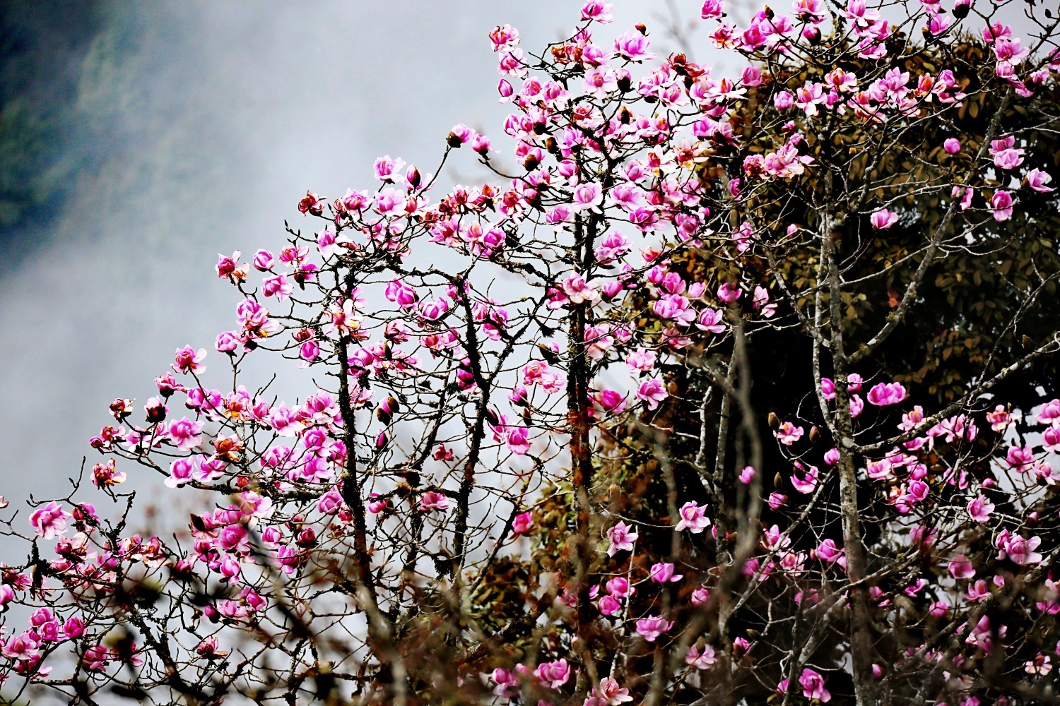 阳春三月,高山林间暖意渐浓,数百株树龄从数十年到上百年的滇藏玉兰次第盛放。洁白硕大的花朵在枝头迎风舒展,与远处的雪山云海、脚下的杜鹃灌丛、层叠的原始森林相互映衬,勾勒出怒江大峡谷独有的春日生态盛景。步入林区,文艺工作者们或举起相机,捕捉繁花与山水交融的震撼画面;或驻足细观,记录滇藏玉兰的生长细节;或铺展画纸,将满树芳华、雪山峡谷一并纳入笔端。