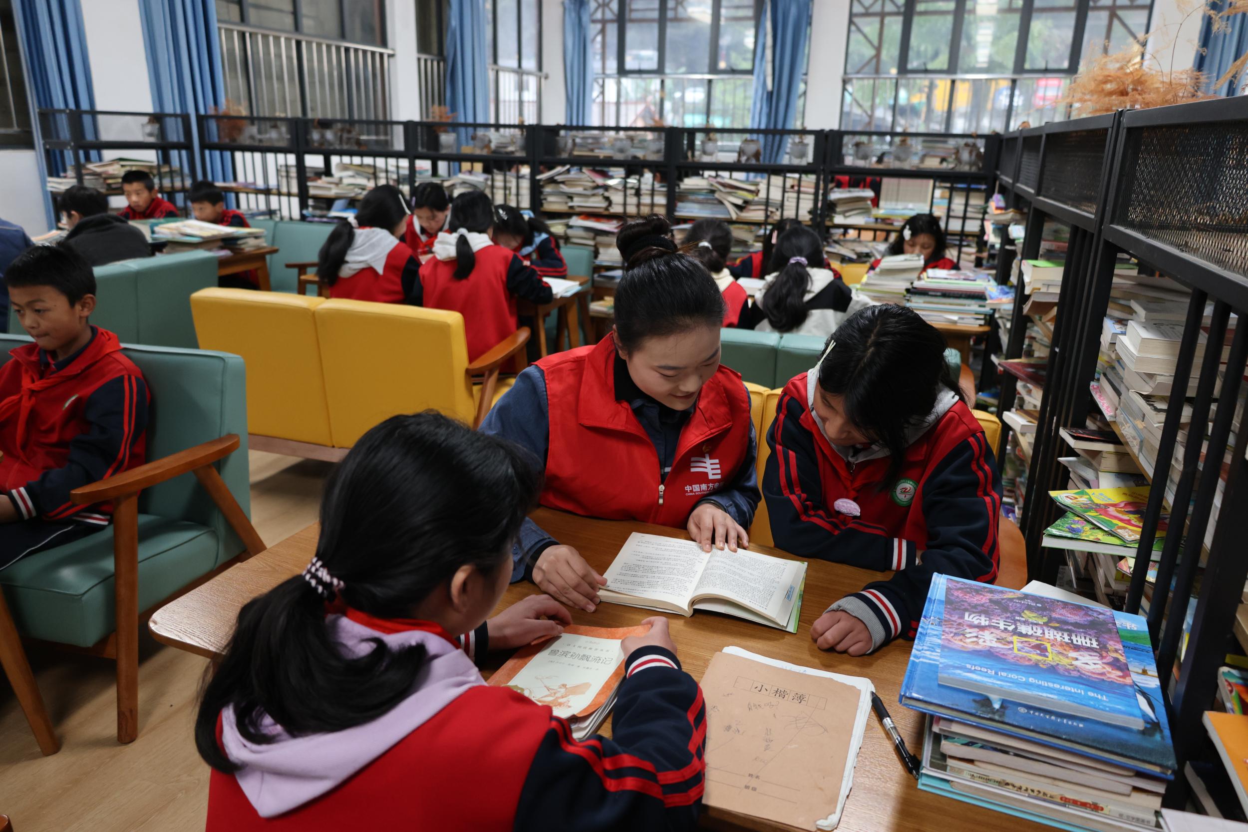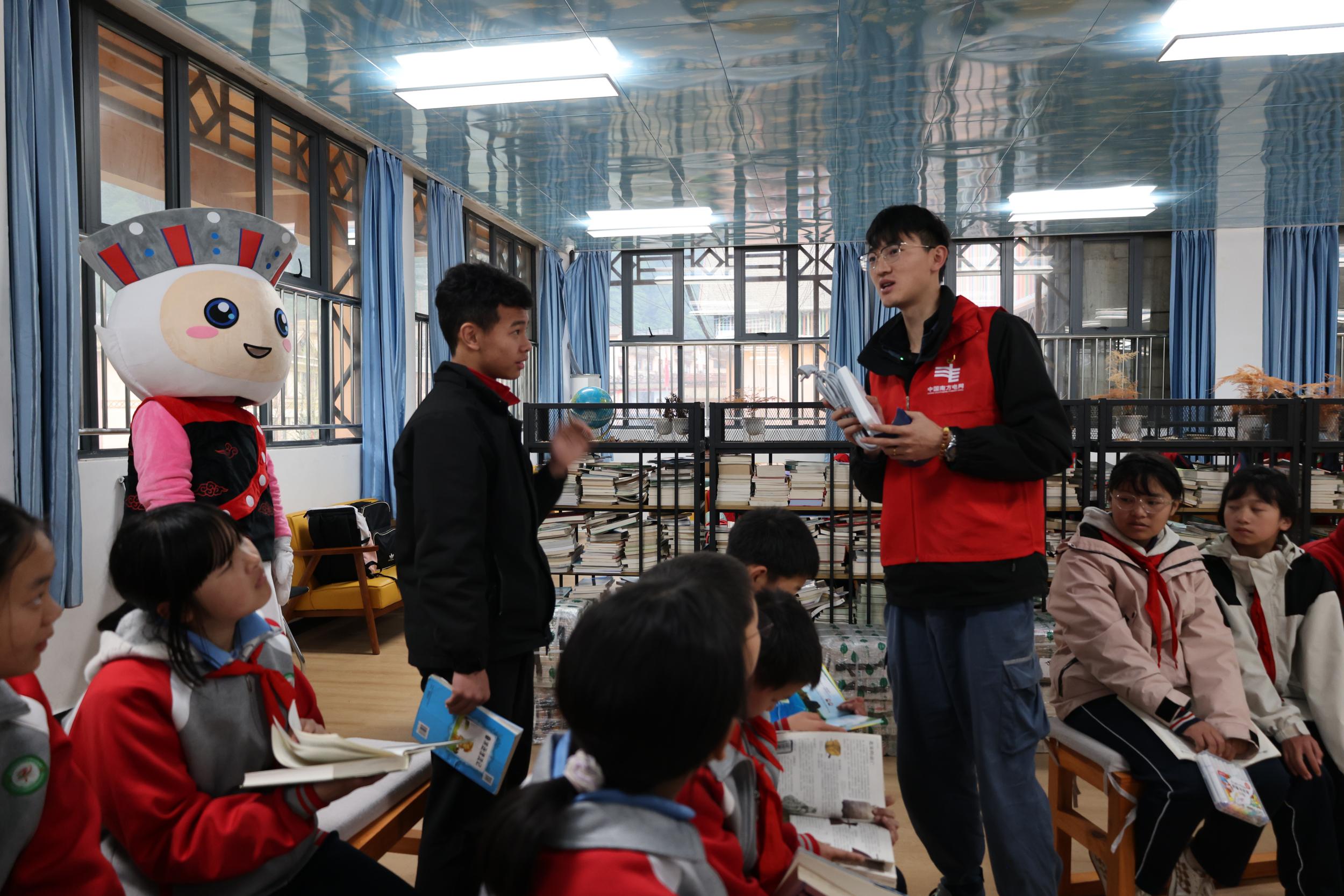 活动伊始,好书分享环节点燃现场热情。志愿者杨心慈以通俗深情的语调,带领孩子们朗读《少年中国说》。“少年强则国强,少年智则国智……”稚嫩的嗓音褪去青涩、满是坚定,真挚情感感染着在场每个人,让红色基因在琅琅书声中传承。