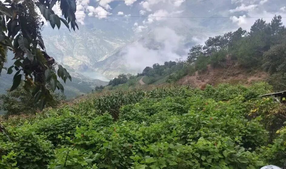 在水银厂、仁甸河、大竹箐和来登村套种田,芸豆藤蔓已攀上齐人高的竹竿,繁密的叶片层层叠叠,织成一道起伏的绿墙,叶片下藏着淡雅的白花,在绿叶掩映中吐露着含蓄的芬芳。在白芸豆荫蔽的绿色华盖之下,另一重生命正在悄然勃发。巧妙套种于其间的矮杆中药材,依偎在豆架的阴凉里,构成了田间一幅立体而和谐的共生图景。高秆芸豆遮阴保湿,矮秆中药材抑制杂草,不同生长周期的中药材搭配种植,通过长中短结合、粮药结合的方式,风险控制能力也大大提升。