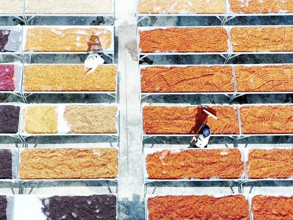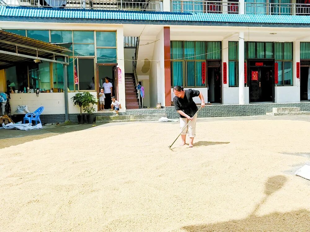 阳光下,金黄的稻谷、橙黄的南瓜、火红的辣椒铺陈开来,勾勒出一幅幅五彩斑斓的晒秋画卷。