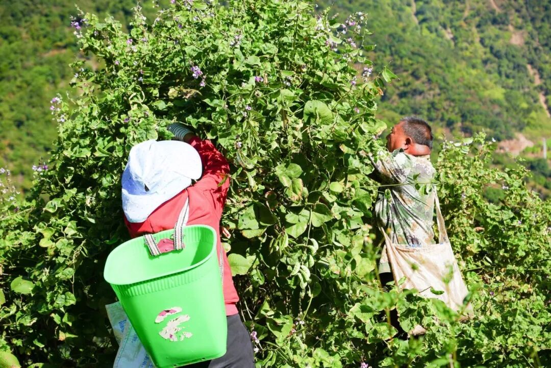 近年来,怒江傈僳族自治州泸水市六库街道白水河村依托自身资源禀赋,不断探索农业多元化发展路径,蹚出了一条以特色产业助力乡村全面振兴的新路子。时下,白水河村坡头自然村的120余亩白扁豆陆续进入采摘期,一串串饱满的豆荚挂满藤蔓,成为当地群众增收致富的“金豆豆”。