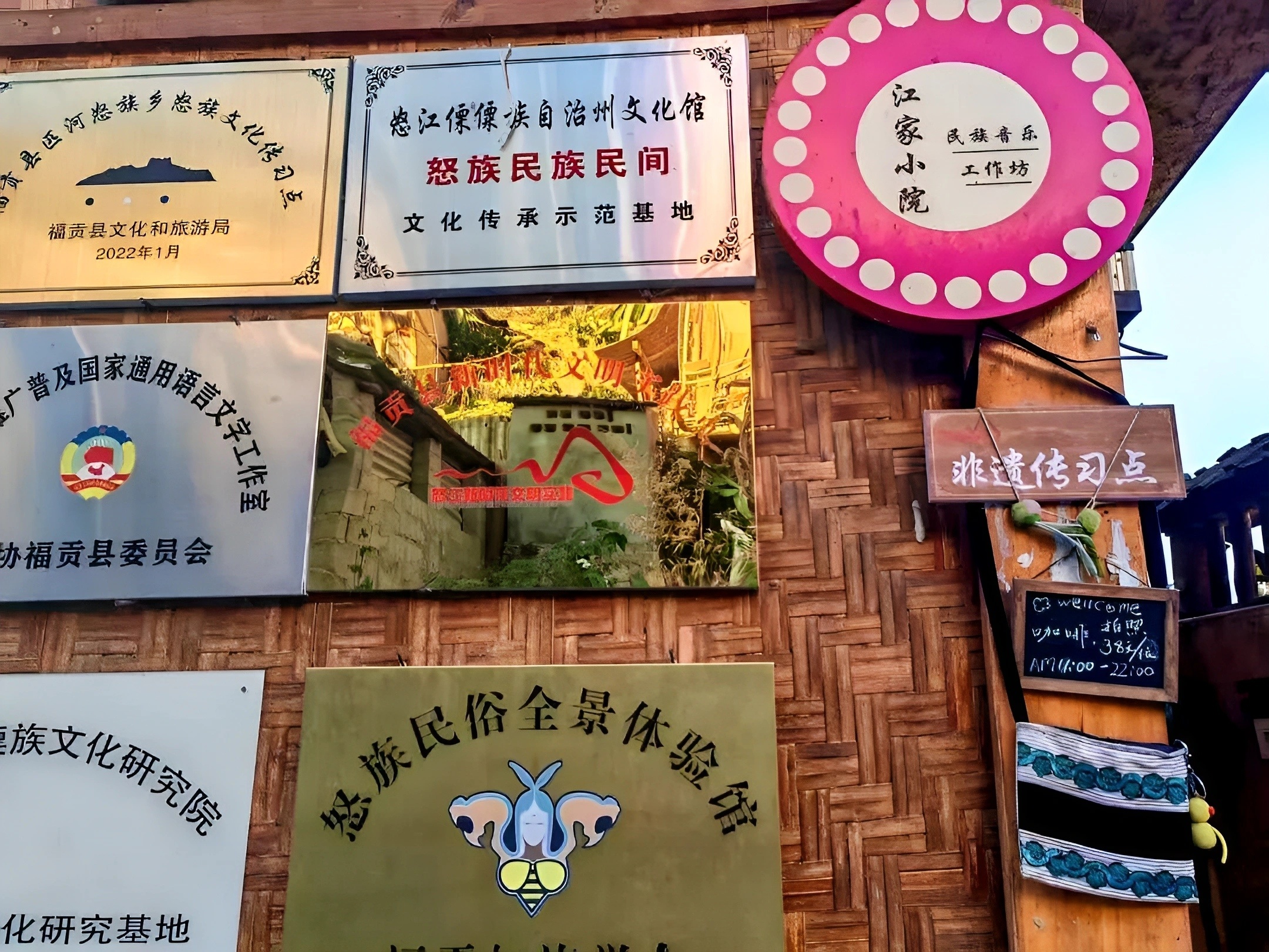 深挖文化资源,讲好民族文化故事。他和妻子春丽小慧凭着对民族文化的热爱,在福贡县老姆登村创办了“小慧传习馆”和民族音乐工作坊。这里不仅是个场所,更像一座活的民族记忆库。他们一点点挖掘、整理怒族、傈僳族的历史文化、民族风情、家风家训和民俗技艺,再结合音乐歌舞,向来这里的人讲述怒江的故事。