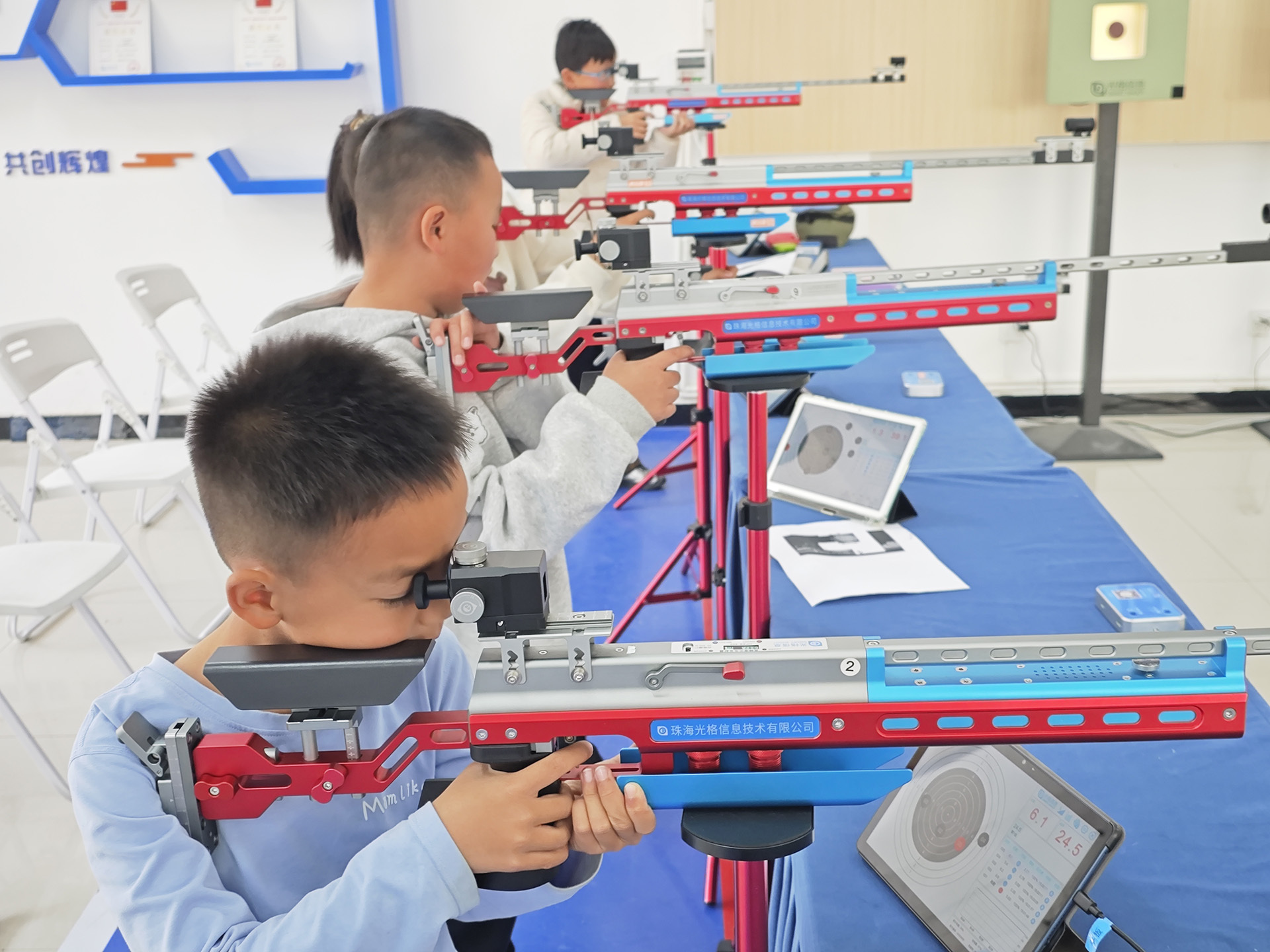 作为当下备受青少年青睐的新兴科技体育项目,光电射击全程无实弹操作,安全性极高。此次寒假班配备10米光电步枪、10米光电手枪两种专业训练设备,围绕射击基础设置系统化课程,让孩子们在绝对安全的环境中沉浸式体验射击运动的乐趣与魅力。