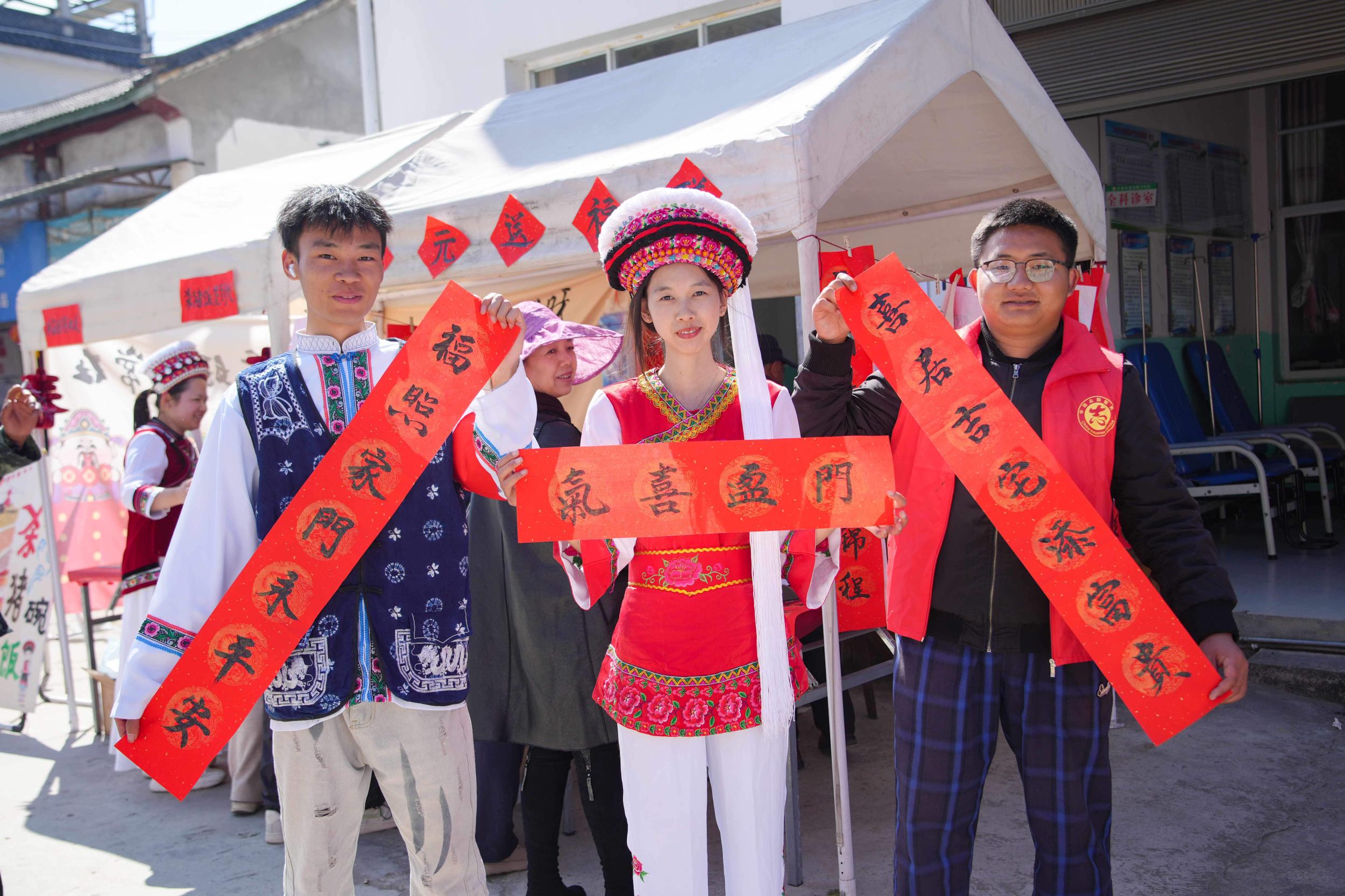 “记忆中元”老照片墙前,不少村民和游客驻足观看,在岁月印记中感受村落的发展与变迁。“金马送春联”活动现场,村里书法爱好者挥毫泼墨,一副副寓意吉祥的春联被大家争相领取。