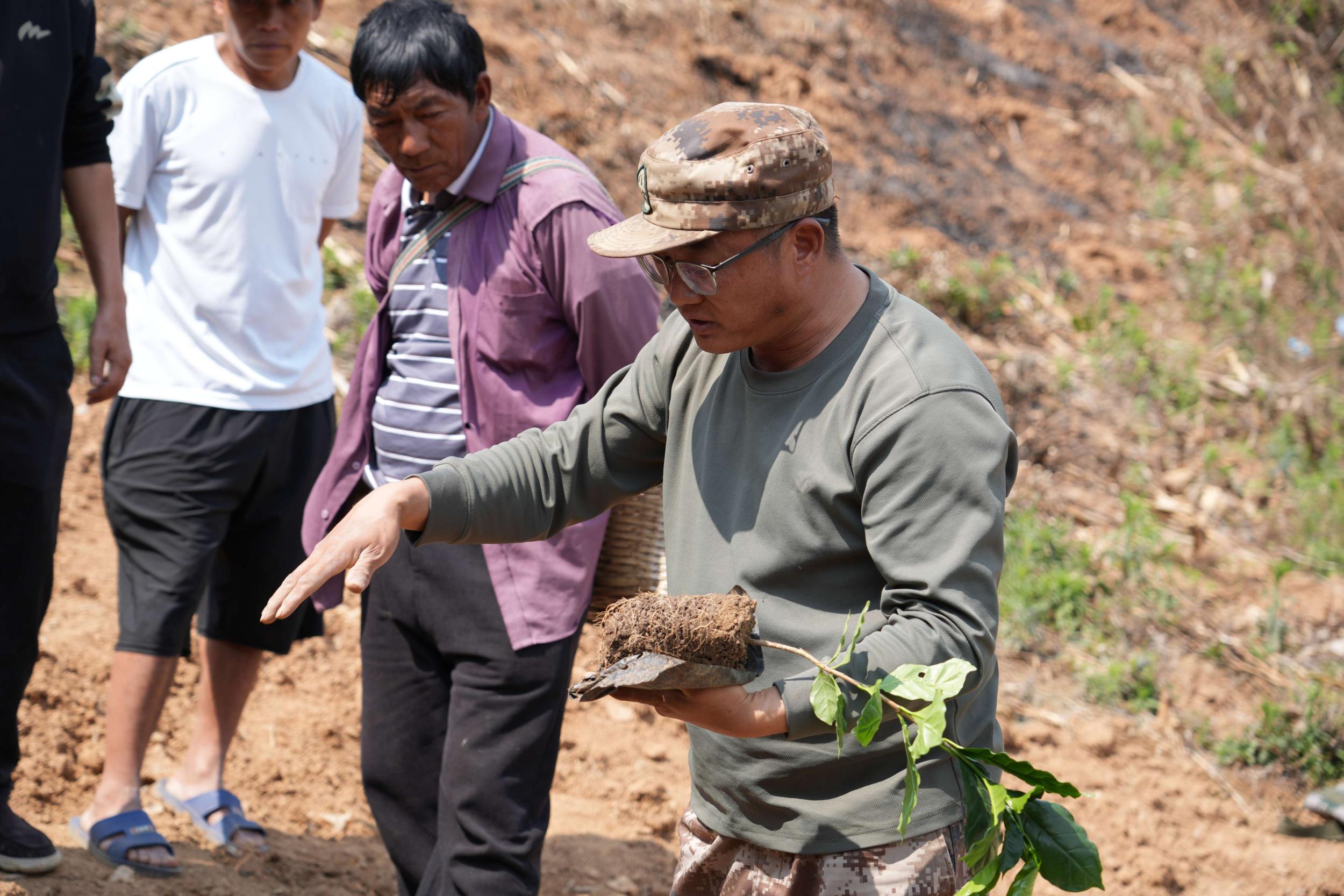 “种植咖啡需开挖深坑、大穴,为咖啡根系生长营造疏松透气的土壤环境;幼苗定植时要处理弯折主根,确保新根垂直向下生长,有效避免植株早衰;同时要施足底肥,缩短缓苗期,切实提高幼苗成活率。”在上江镇蛮英村、丙奉村的培训现场,云南省德宏热带农业科学研究所派驻泸水的咖啡技术专家肖兵一边现场实操示范,一边细致讲解种植知识要点,将专业技术转化为通俗易懂的实操方法,让咖农听得懂、学得会。